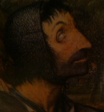Pormenor de  A Virgem com o Canon evidenciando o espessamento das artérias temporais.